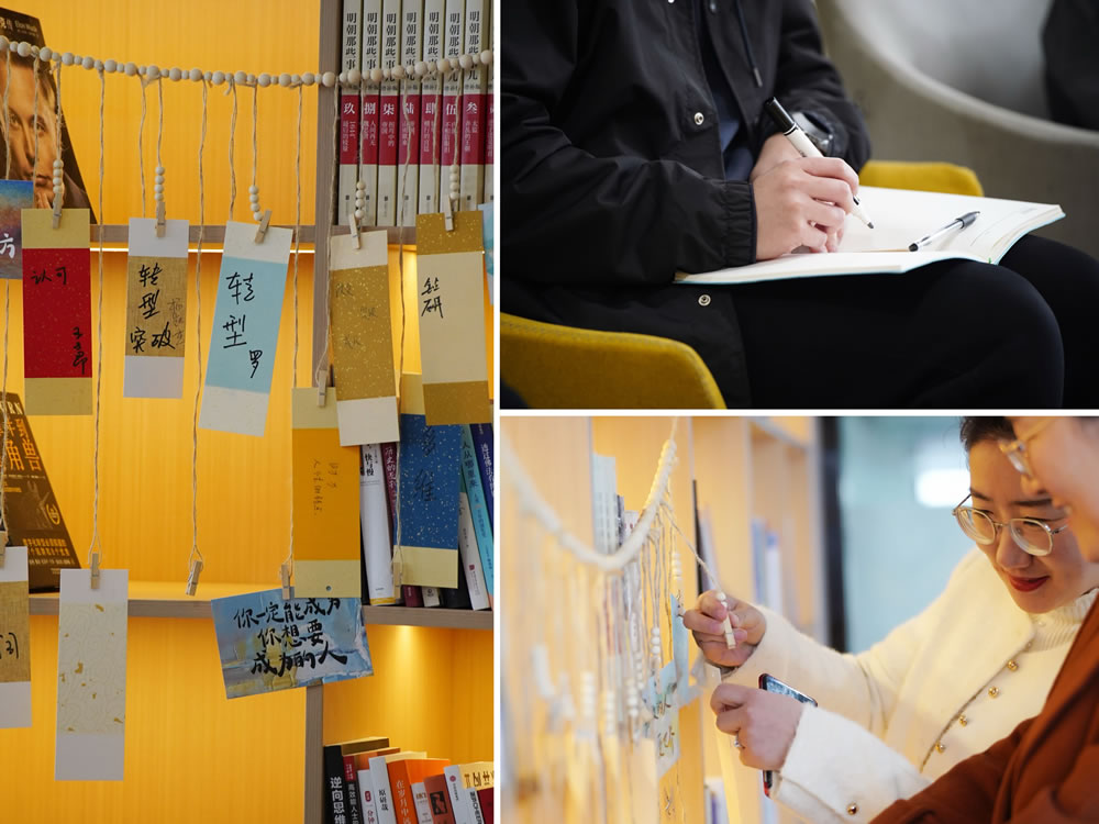 活动开场后,每位参与者以“2025年最想突破的职场关键词”为引,写下新年的成长期许。以诚为本赢在诚信9001书友们将关键词书签悬挂于读书室主题墙,再以"可落地行动项+计划阅读书目"构建年度阅读企划。
